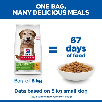 A Hill's Science Plan Senior Vitality Mature Adult 7+ Small & Mini csirke teljes értékű eledel kutyáknak.
