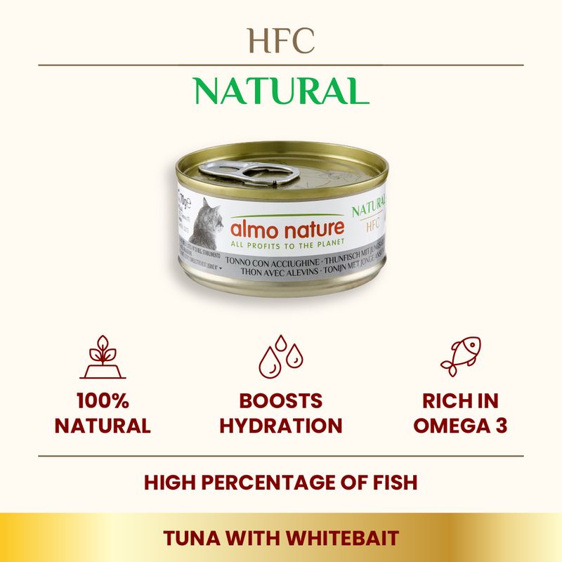 Az Almo Nature HCF Natural egyrészt kiváló minőségű állati fehérjékkel látja el kedvencét, másrészt a macskaeledel nem tartalmaz gluténtartalmú gabonát. Így ezt az eledelt még gluténérzékeny állatok is nyugodtan fogyaszthatják. Emellett a magas nedvességtartalom segítheti macskájának abban, hogy elegendő folyadékhoz jusson.